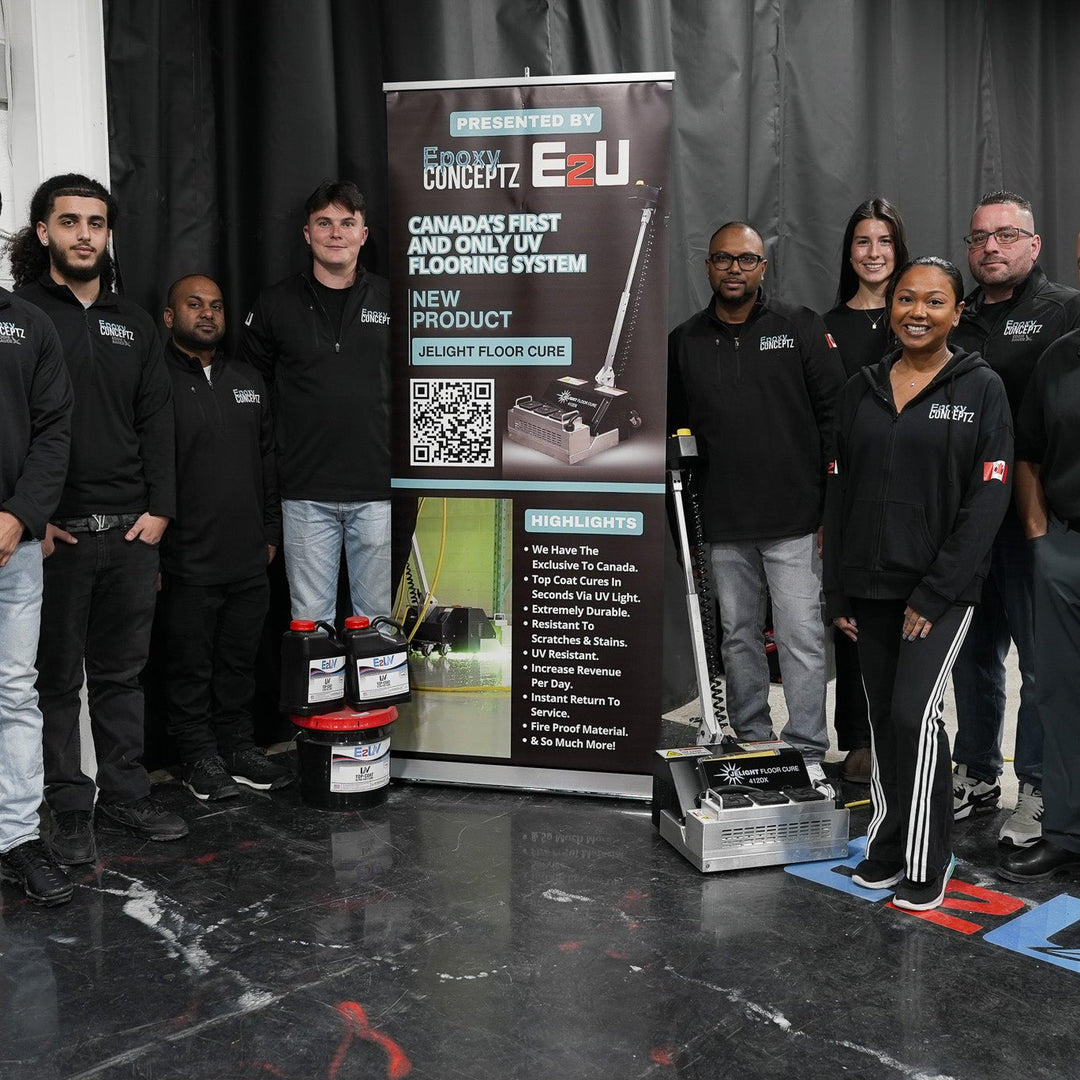 Join Epoxy Conceptz and E2U for a one-of-a-kind opportunity to experience the revolutionary UV Top Coat, exclusive to Canada. This cutting-edge product offers unparalleled benefits, curing in seconds and designed to elevate your epoxy flooring services to the next level.